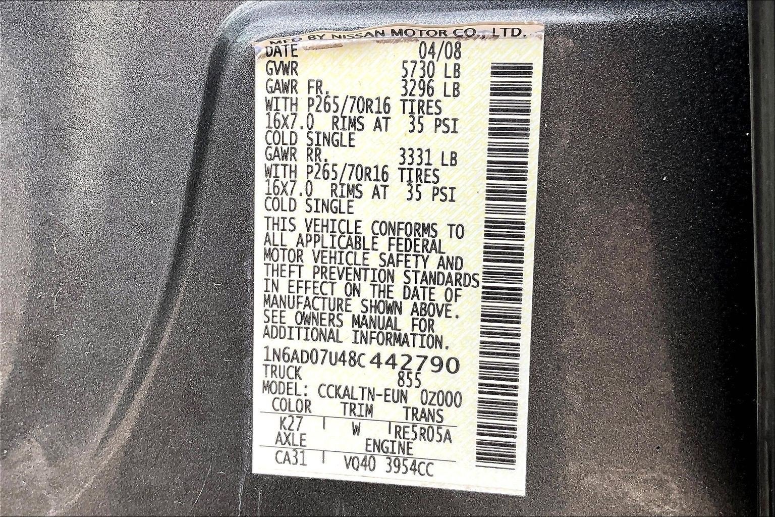 - Vehicle Name: Nissan Frontier